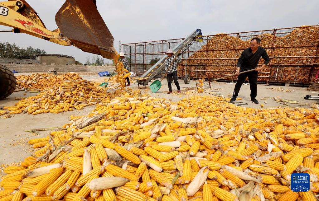 金秋十月,各地農民搶抓農時(shí),晾曬收獲的玉米、稻谷等,鄉間呈現出金色的豐收圖景。