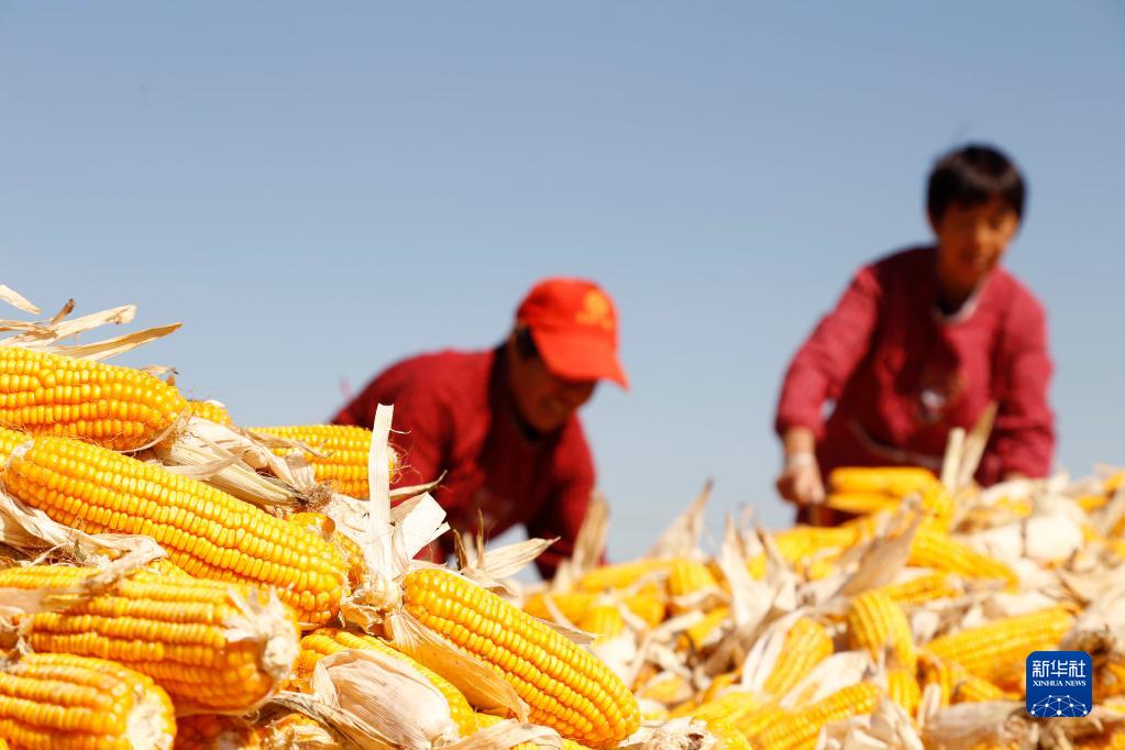 10月9日,河北省邢臺市南和區賈宋鎮郄村村民在晾曬玉米。