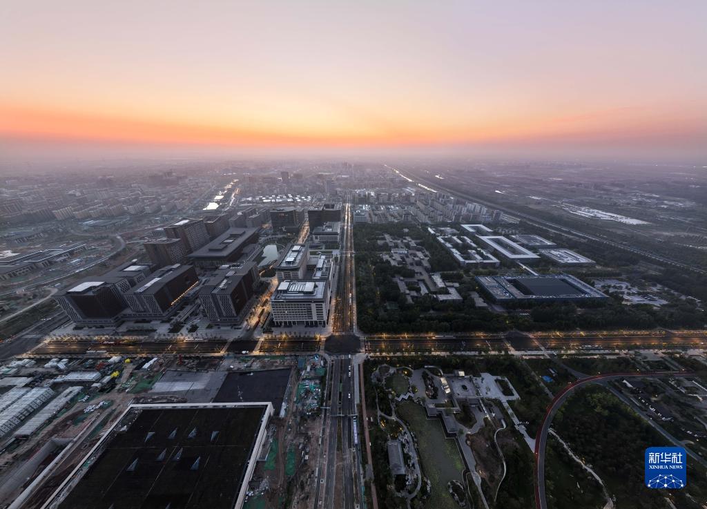 2022年9月8日拍攝的雄安新區容東片區的清晨(無(wú)人機照片)。
