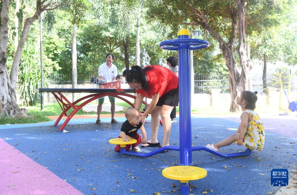 10月10日,在位于廣州市花都區的紫蘭口袋公園里,家長(cháng)帶著(zhù)孩子玩耍。