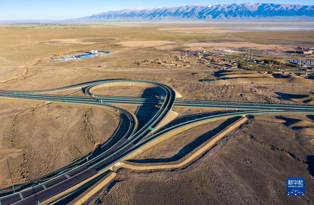 在新疆巴里坤哈薩克自治縣拍攝的(北)京新(疆)高速公路上的一處出入口(2021年6月28日攝,無(wú)人機照片)。
