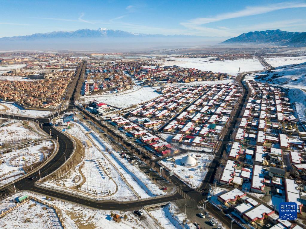新疆烏魯木齊縣水西溝鎮的一處村莊旁的道路縱橫(2022年1月11日攝,無(wú)人機照片)。