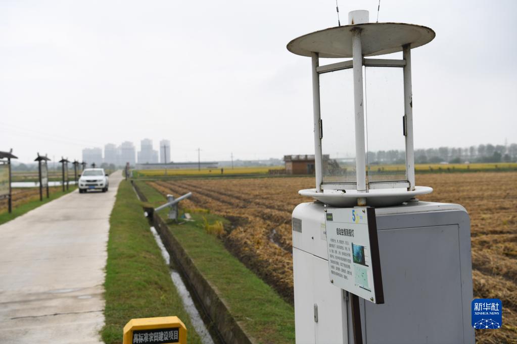 這是中聯(lián)智慧農業(yè)峨橋示范基地內設立的自動(dòng)蟲(chóng)情測報燈(10月9日攝)。