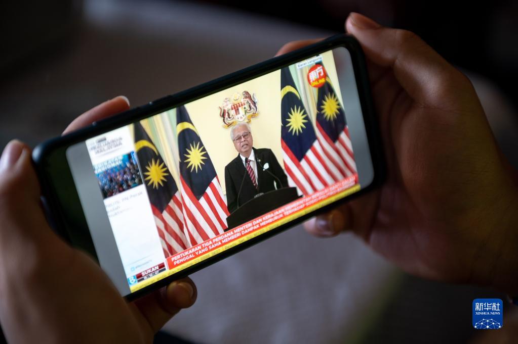 10月10日,一名男子在馬來(lái)西亞吉隆坡觀(guān)看馬來(lái)西亞總理伊斯邁爾電視講話(huà)直播。