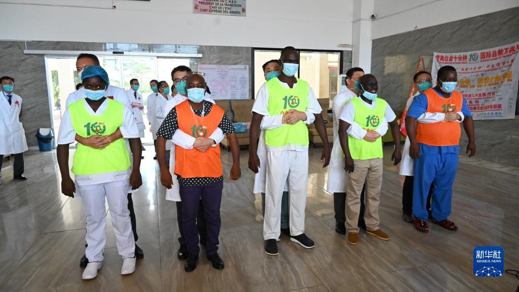第29批中國援幾內亞醫療隊10日在幾內亞首都科納克里的中幾友好醫院開(kāi)展急救培訓活動(dòng)。此次活動(dòng)主題為“急救白金十分鐘,國際自救互救日”,援幾醫療隊為中幾友好醫院的醫護人員開(kāi)展了心肺復蘇、海姆立克急救、轉運患者、急診接診等項目的演練和培訓。