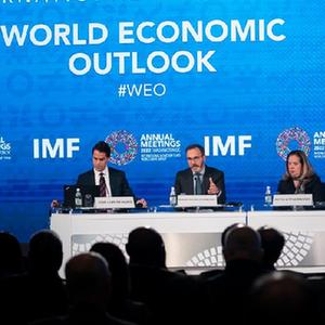 這是10月11日在美國華盛頓拍攝的國際貨幣基金組織(IMF)《世界經(jīng)濟展望報告》新聞發(fā)布會(huì )。