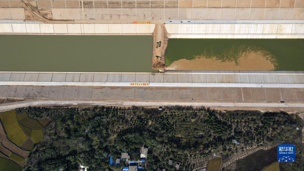 10月13日,中鐵十局三建公司施工機械在引江濟淮工程河道上拆除圍堰(無(wú)人機照片)。