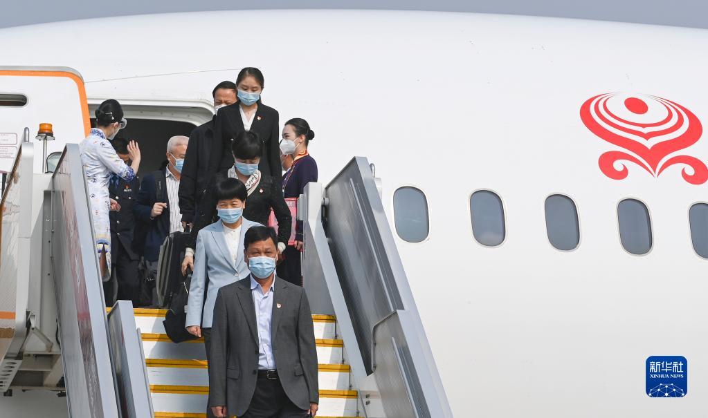 10月14日,來(lái)自海南省的黨的二十大代表乘飛機抵達北京首都國際機場(chǎng)。