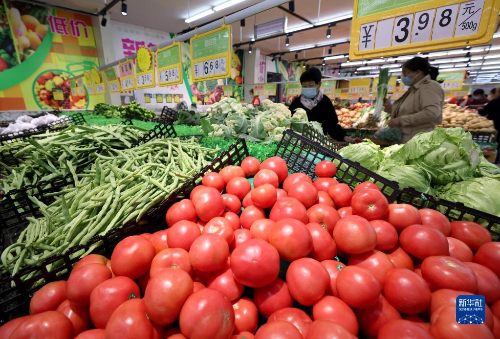 10月14日,消費者在山東省棗莊市一家超市選購蔬菜。