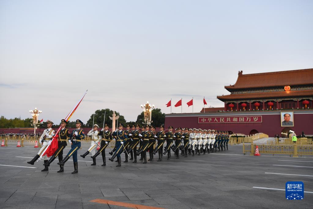 10月16日清晨,北京天安門(mén)廣場(chǎng)舉行升國旗儀式。