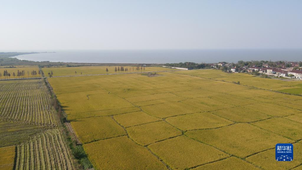 這是10月16日在安徽省巢湖市槐林鎮巢湖岸邊拍攝的水稻田(無(wú)人機照片)。