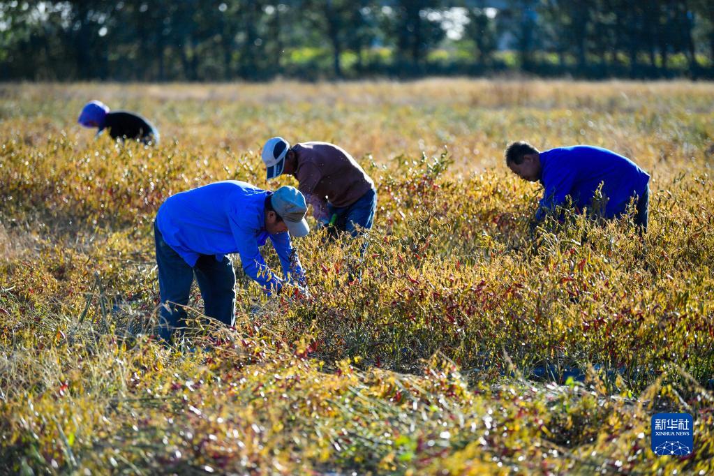 10月16日,在天津市寶坻區王卜莊鎮下王各莊村,村民在田間采收辣椒。 新華社記者 孫凡越 攝