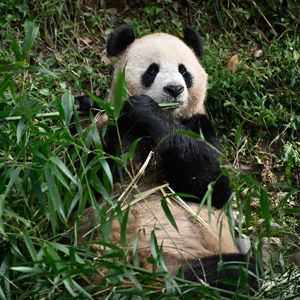 10月18日,在中國大熊貓保護研究中心雅安基地,大熊貓“四?!保ㄗ螅┖汀熬┚钡却霭l(fā)。