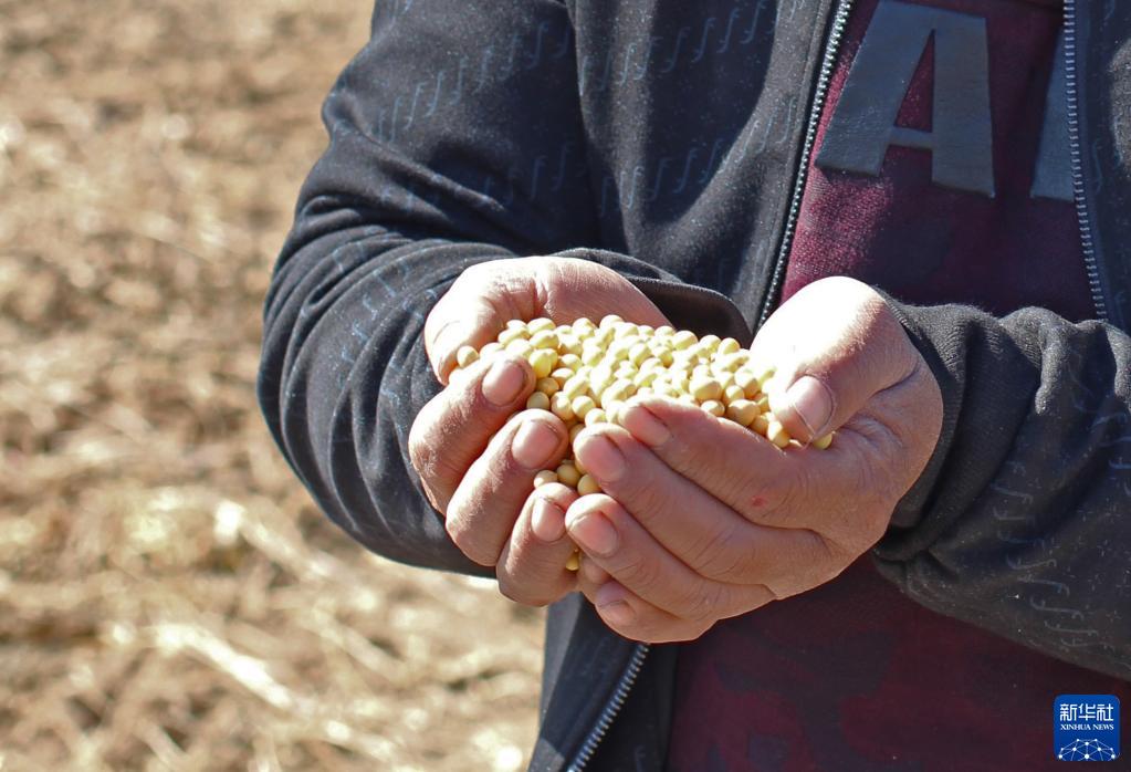 10月7日在遼寧沈陽(yáng)市法庫縣依牛堡子鎮崔家屯村拍攝的收獲的大豆。