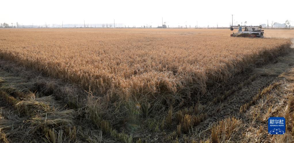10月19日,在沈陽(yáng)市蘇家屯區紅菱街道北紅村,村民駕駛收割機收割水稻。