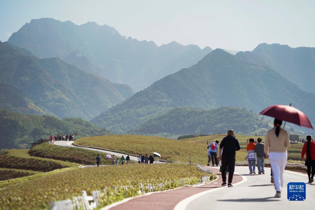 游人在秦嶺北麓的陜西藍田縣九間房鎮峪口村內游玩(10月16日攝)。