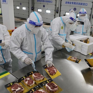 當日,第五屆進(jìn)博會(huì )的第一批進(jìn)口冷鏈食品展品,運抵位于上海青浦區的名聯(lián)冷鏈第五屆進(jìn)博會(huì )進(jìn)口冷鏈食品總倉。在接下來(lái)的10天內,預計約3000箱冷鏈食品展品,將在總倉集中完成最小包裝消毒和核酸檢測。