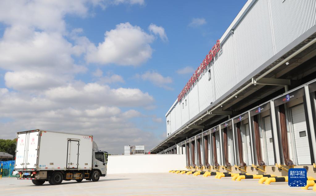 10月20日,裝載第一批進(jìn)口冷鏈食品展品的卡車(chē)駛入總倉卸貨區域。