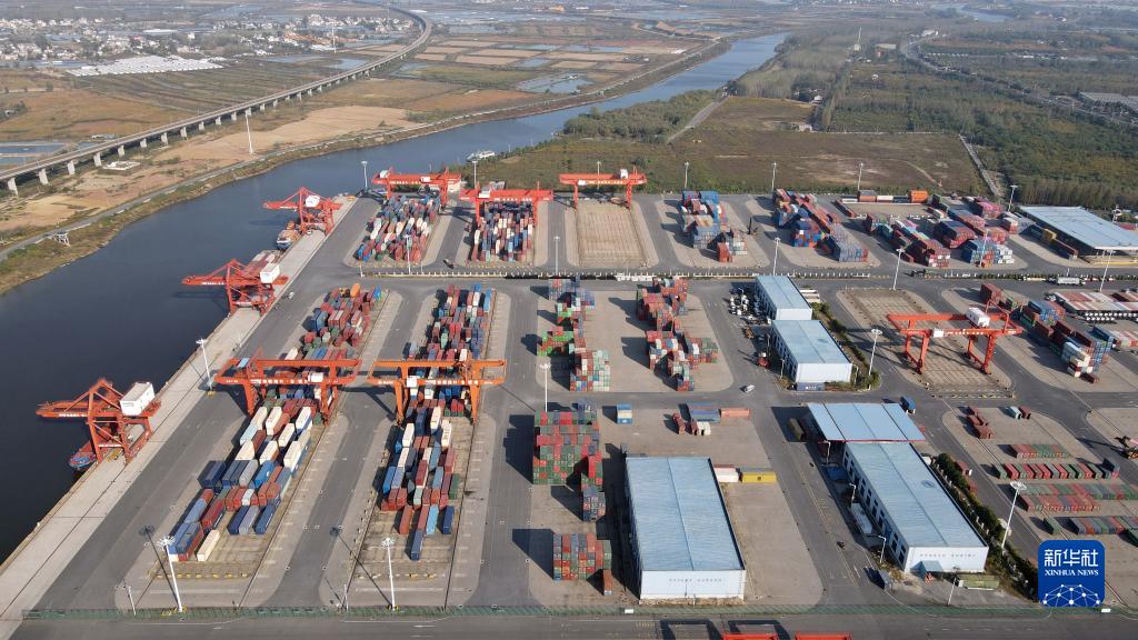 這是10月19日拍攝的合肥港國際集裝箱碼頭(無(wú)人機照片)。