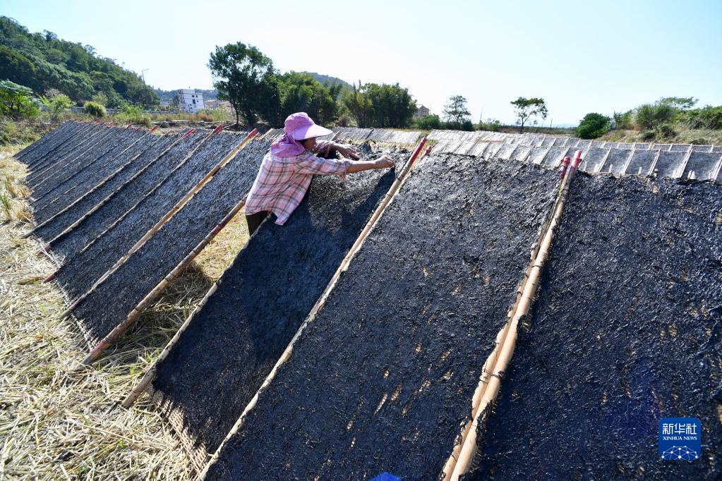 10月21日,福建省霞浦縣三沙鎮漁民在晾曬紫菜。