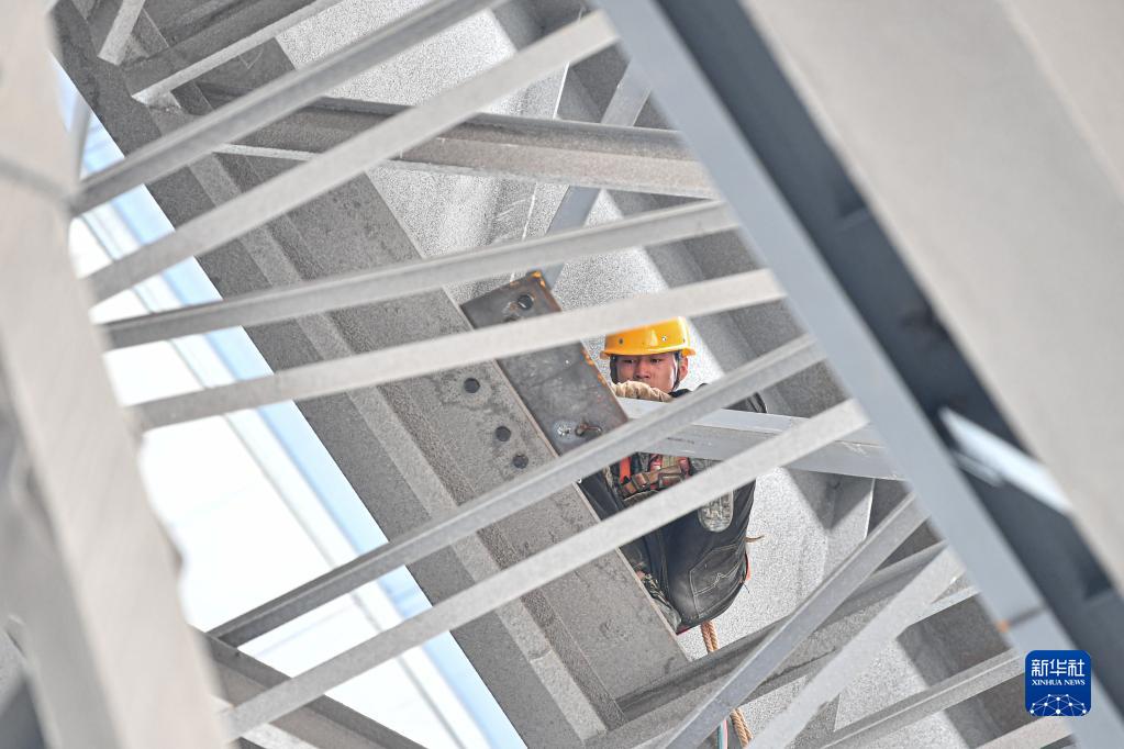 10月21日,工人在海南東方臨港產(chǎn)業(yè)園東方明陽(yáng)新能源高端裝備產(chǎn)業(yè)基地項目工地施工。