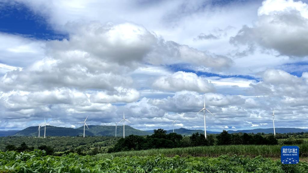 這是10月4日在泰國猜也蓬府拍攝的由中國金風(fēng)科技提供的風(fēng)力發(fā)電機。