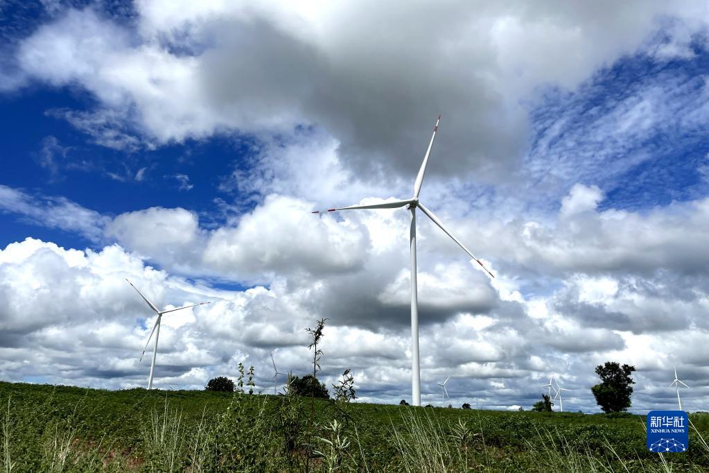 這是10月4日在泰國猜也蓬府拍攝的由中國金風(fēng)科技提供的風(fēng)力發(fā)電機。