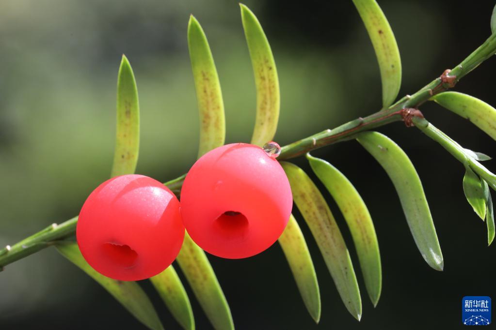 10月14日,在云南省騰沖市來(lái)鳳山國家級森林公園,國家一級保護植物紅豆杉的果實(shí)正值成熟。