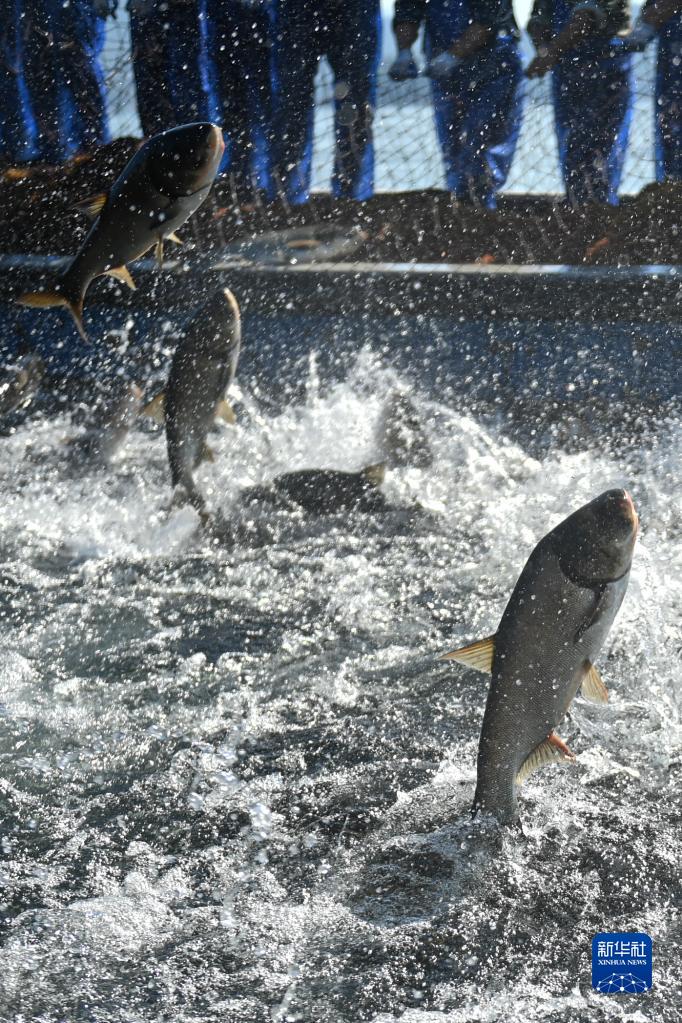 金秋時(shí)節,浙江省淳安縣千島湖黃山尖水域開(kāi)展巨網(wǎng)捕魚(yú),捕撈隊員合力拉網(wǎng),捕獲12萬(wàn)多斤鰱鳙魚(yú),沸騰魚(yú)鄉迎來(lái)豐收季。