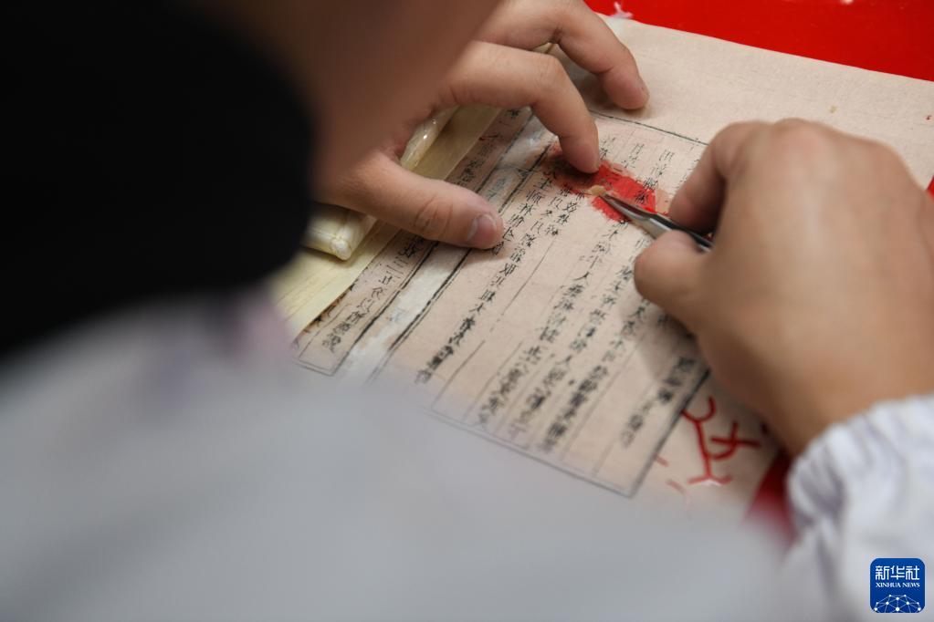 10月20日,在安徽中醫藥大學(xué)圖書(shū)館古籍部,古籍修復師茆可人進(jìn)行古籍修復。