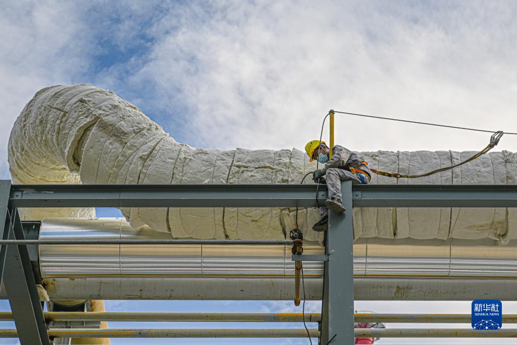 10月22日,工人在海南東方臨港產(chǎn)業(yè)園海南精細化工二期工程丙烯腈系列裝置項目工地施工。