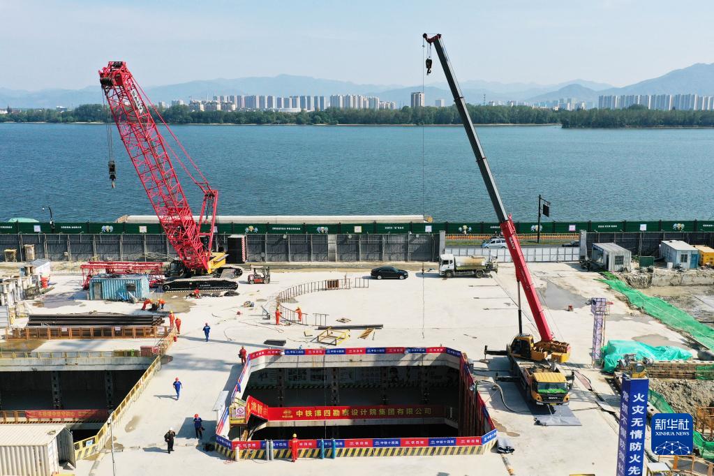 10月24日在浙江省杭州市富陽(yáng)區拍攝的秦望通道工程過(guò)江隧道盾構機接收工作井(無(wú)人機照片)。