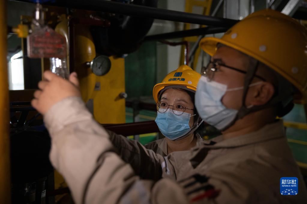 10月24日,在大唐綏化熱電有限公司供熱車(chē)間內,化驗員在進(jìn)行油質(zhì)采樣。