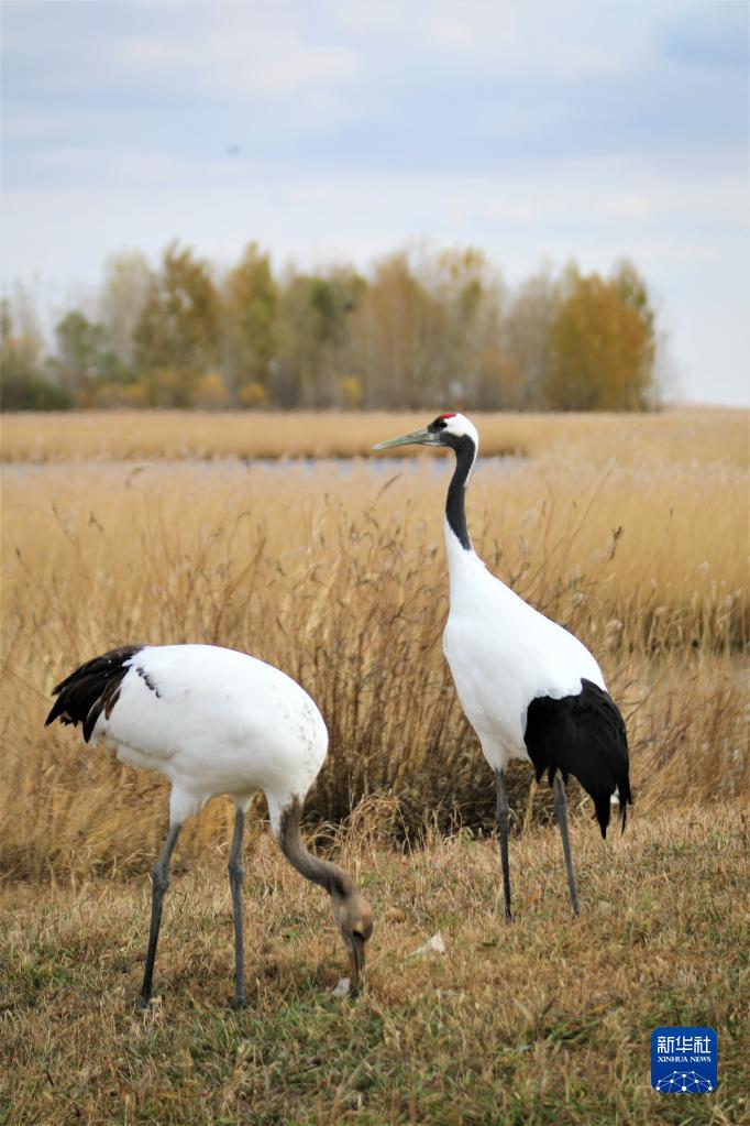 這是黑龍江扎龍國家級自然保護區的丹頂鶴(2022年10月21日攝)。 新華社發(fā)(宋燕軍 攝)