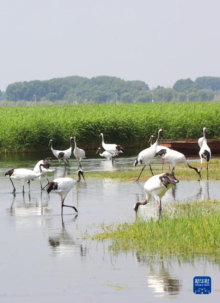 這是黑龍江扎龍國家級自然保護區的丹頂鶴(2022年6月15日攝)。 新華社發(fā)(宋燕軍 攝)
