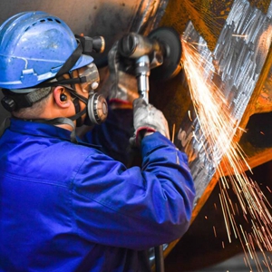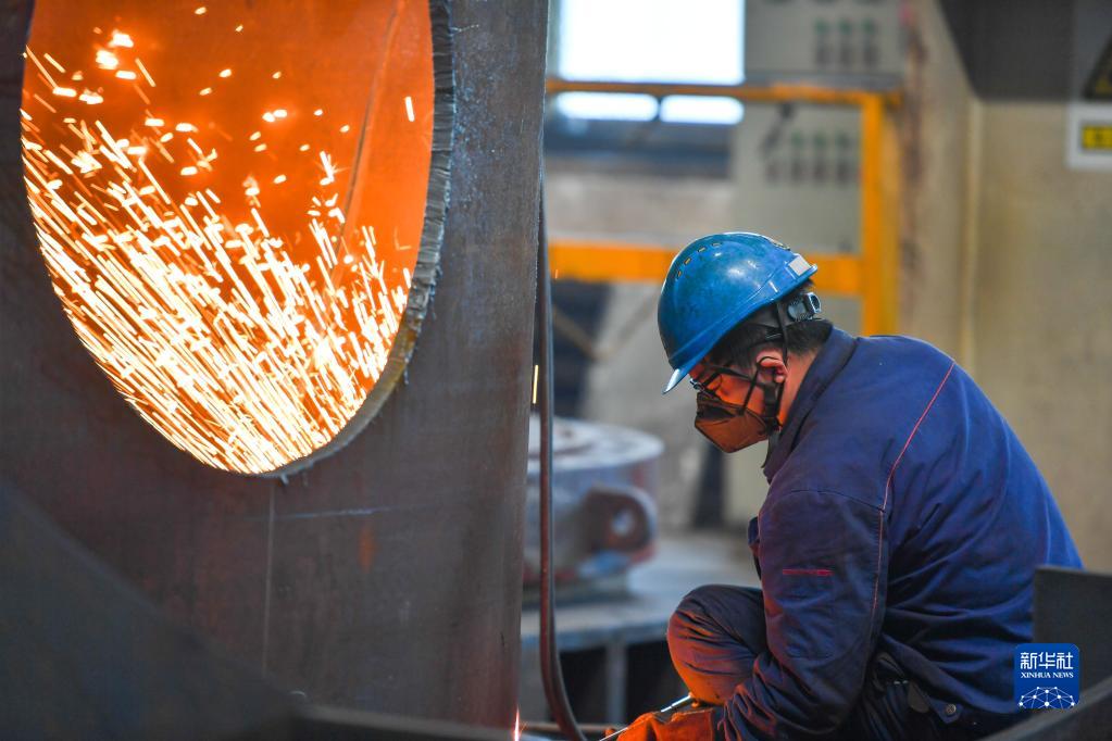 在哈電集團哈爾濱鍋爐廠(chǎng)有限責任公司的生產(chǎn)車(chē)間,工人在生產(chǎn)作業(yè)(10月24日攝)。