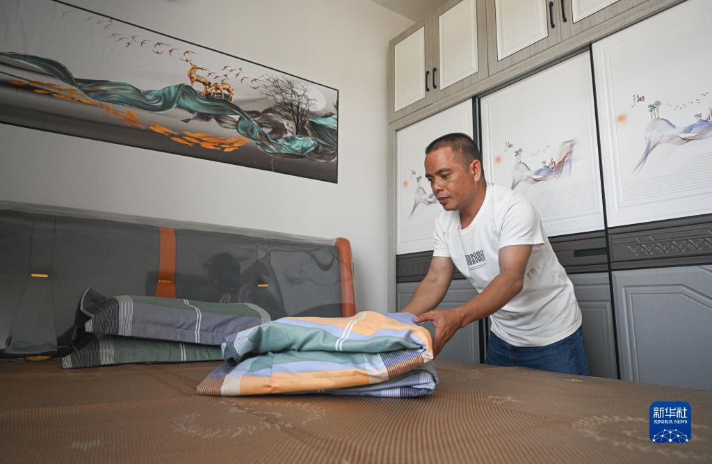 10月25日,村民在位于新苗村的安置房整理臥室。