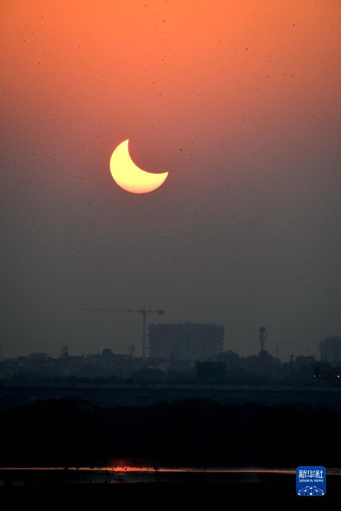 這是10月25日在印度德里拍攝的日偏食。