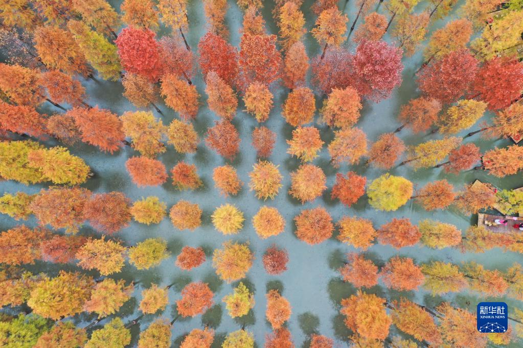這是10月26日拍攝的泗洪洪澤湖濕地景區秋色(無(wú)人機照片)。