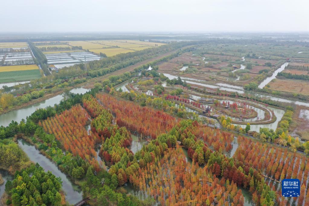 這是10月26日拍攝的泗洪洪澤湖濕地景區秋色(無(wú)人機照片)。