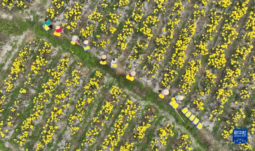 近日,湖南省衡陽(yáng)市南岳區壽岳鄉岳林村種植的高山皇菊進(jìn)入采收期,村民搶抓晴好天氣采摘菊花、加工菊花茶。當地依托高山林地特點(diǎn),發(fā)展高山皇菊種植產(chǎn)業(yè),推動(dòng)農旅融合,助力鄉村振興。