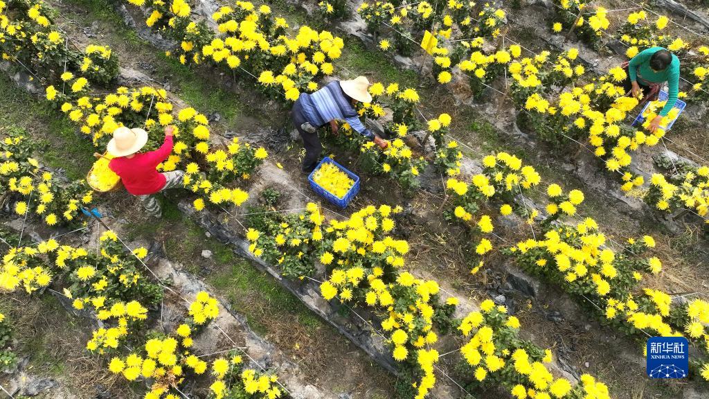 近日,湖南省衡陽(yáng)市南岳區壽岳鄉岳林村種植的高山皇菊進(jìn)入采收期,村民搶抓晴好天氣采摘菊花、加工菊花茶。當地依托高山林地特點(diǎn),發(fā)展高山皇菊種植產(chǎn)業(yè),推動(dòng)農旅融合,助力鄉村振興。
