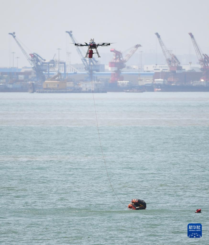 10月27日,無(wú)人機在演練海域拋下救生筏。