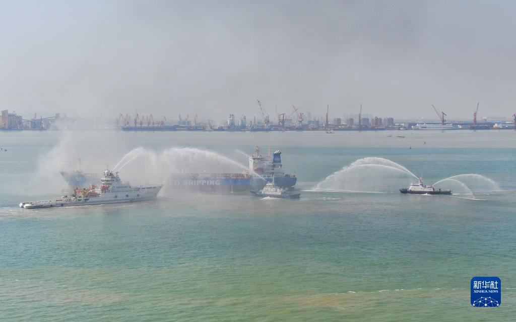 10月27日,參演搜救船只噴水滅火(無(wú)人機照片)。