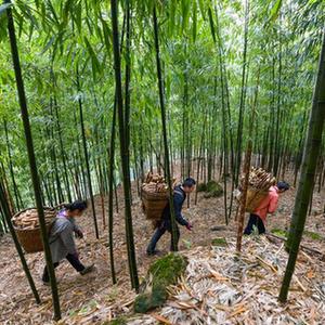 10月27日,在貴州省赤水市寶源鄉聯(lián)華村,農民搬運大竹筍。