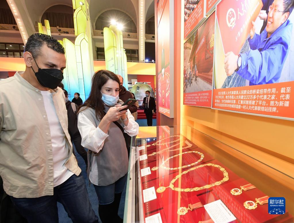 10月27日,外國嘉賓在參觀(guān)“奮進(jìn)新時(shí)代”主題成就展。新華社記者 李賀 攝