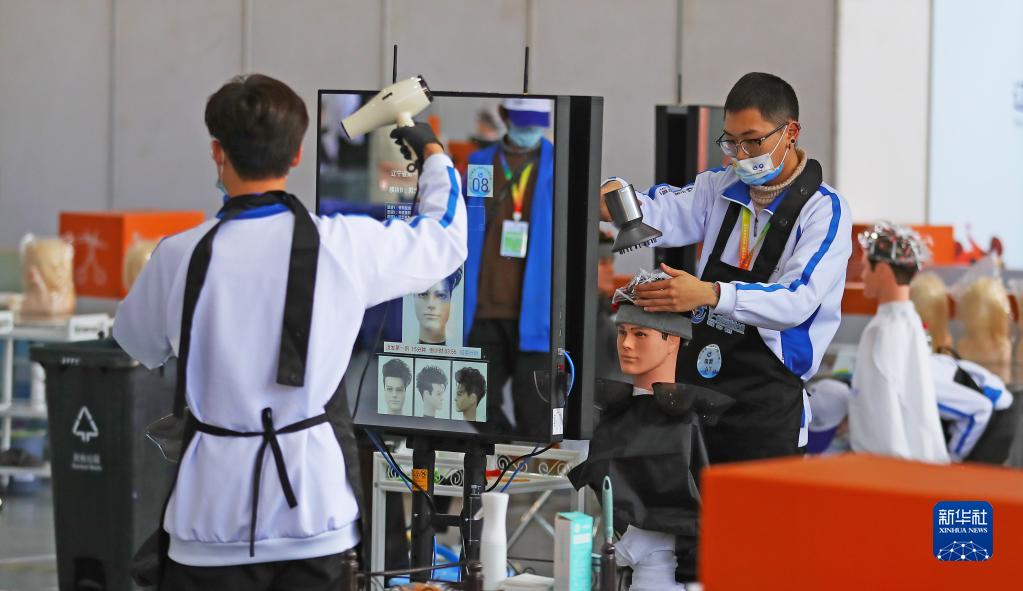 10月27日,參賽選手參加美發(fā)項目比賽。