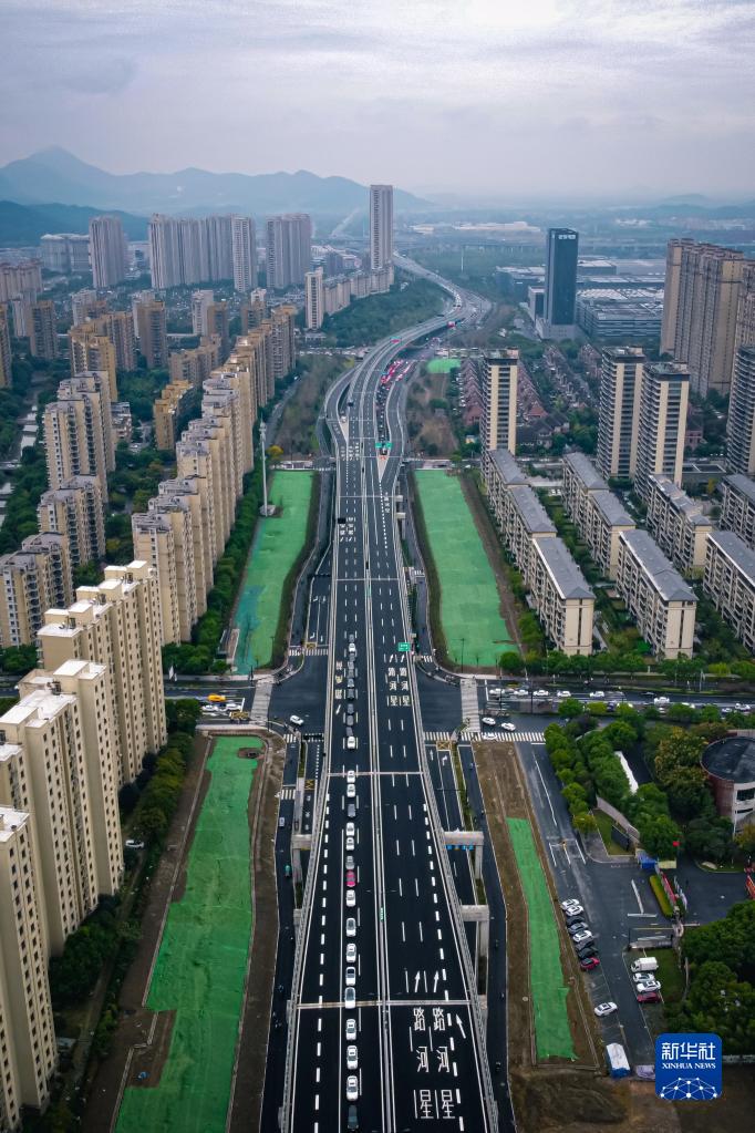 這是10月28日拍攝的杭州市臨平區320國道快速路二期(無(wú)人機照片)。