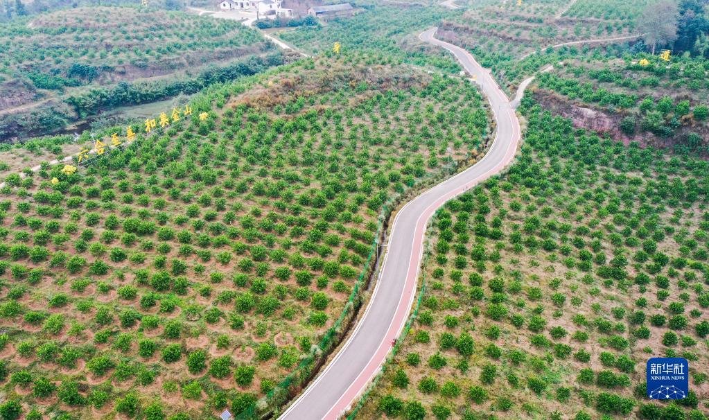 這是10月27日在重慶大足區金山鎮天河村拍攝的佛手種植基地(無(wú)人機照片)。