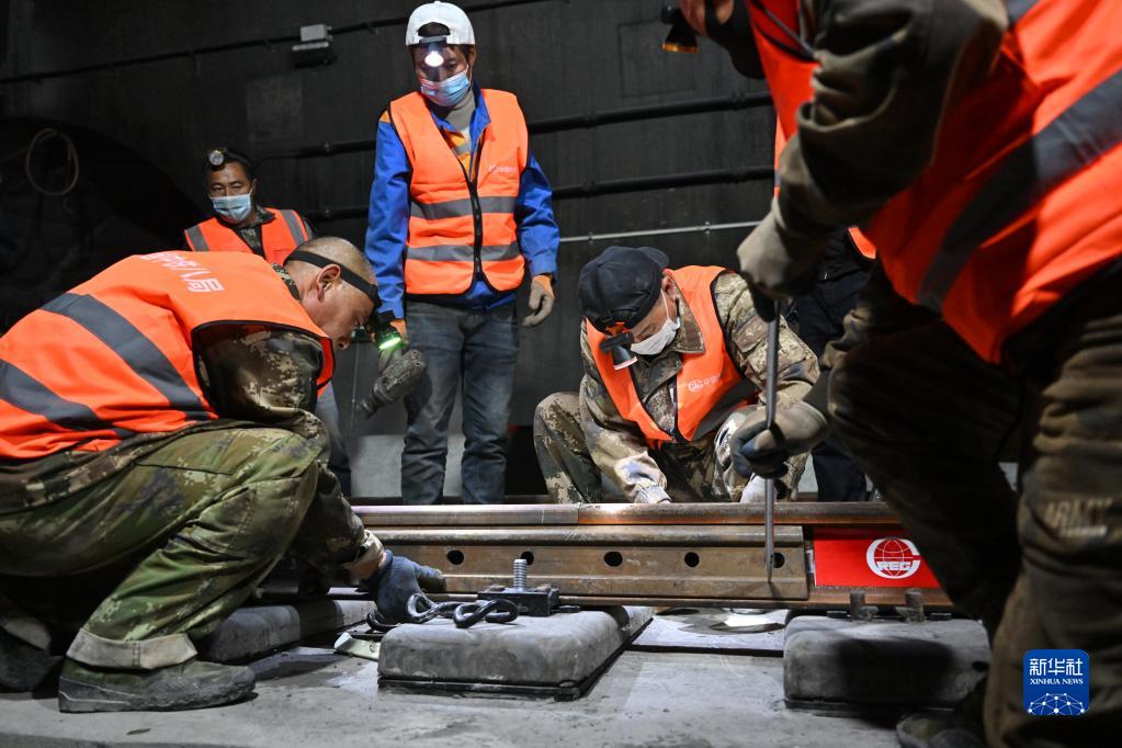 10月28日凌晨,在四川省涼山彝族自治州喜德縣小相嶺隧道內,施工人員進(jìn)行成昆鐵路復線(xiàn)鋪軌工作。